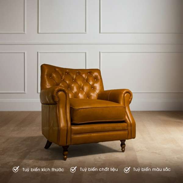 Kích thước đo may: Chúng tôi sẵn sàng điều chỉnh tỷ lệ của ghế để phù hợp tuyệt đối với diện tích thực tế của căn phòng, từ một góc đọc sách nhỏ xinh bên cửa sổ đến không gian sảnh đón khách uy nghi.