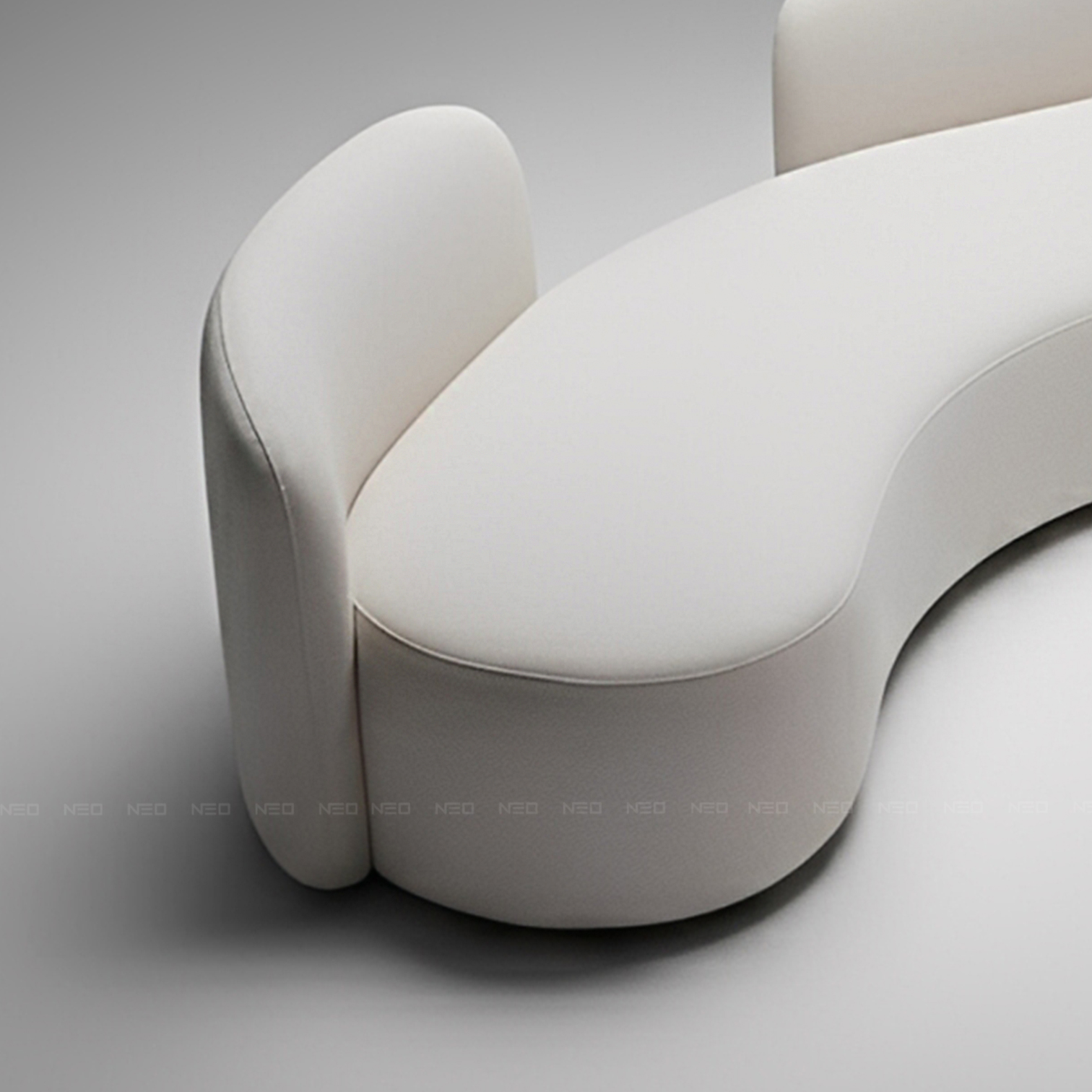 Curved Sofa Fabric từ NEO gây ấn tượng mạnh ngay từ cái nhìn đầu tiên nhờ những đường cong liền mạch, mềm mại và tinh tế. Thiết kế này giúp sofa trở thành tâm điểm thị giác của phòng khách, mang lại cảm giác nghệ thuật và sự khác biệt rõ rệt so với các mẫu sofa dáng thẳng thông thường. Dù đặt trong không gian rộng hay vừa phải, sofa cong vẫn giữ được sự cân đối và thu hút.