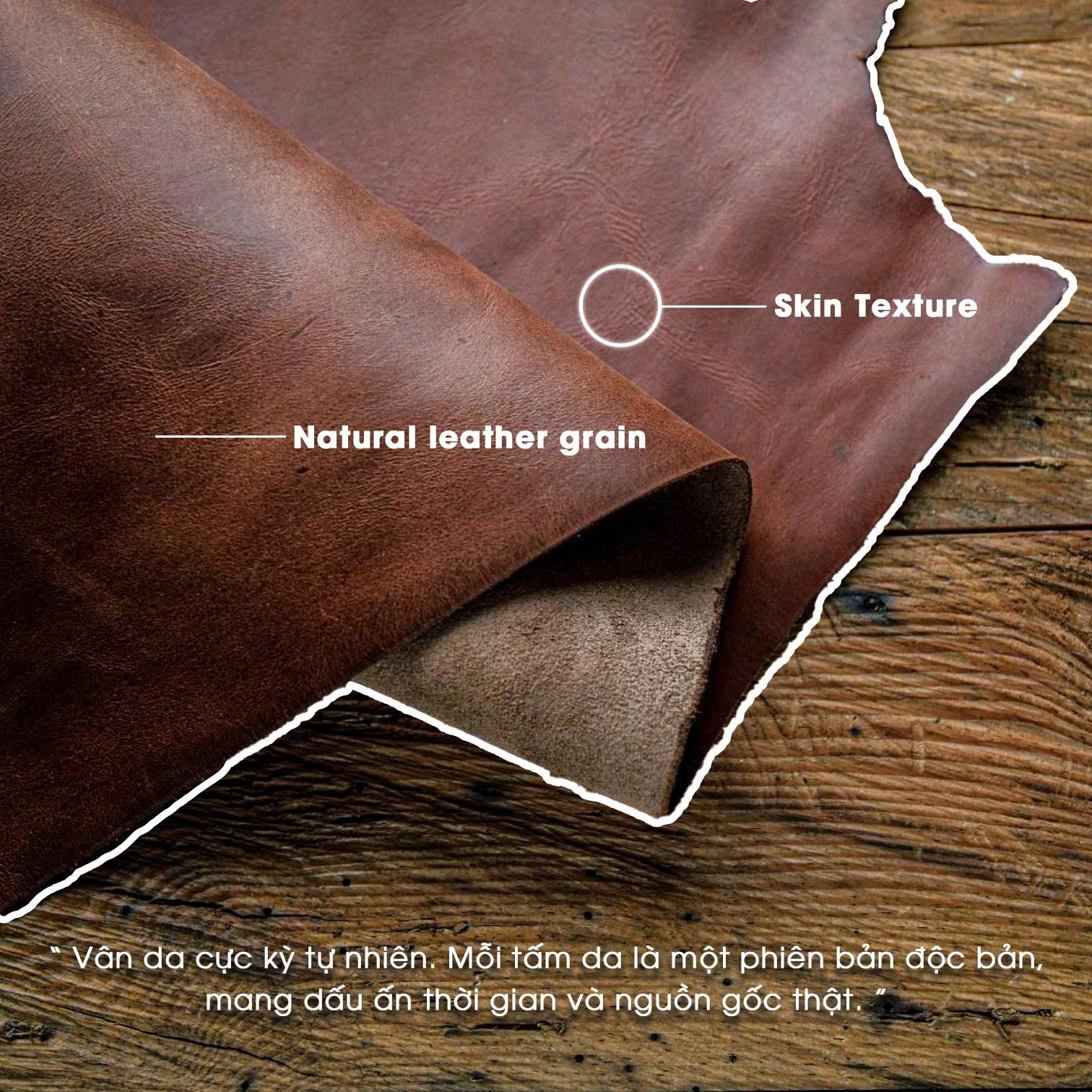 Lý do da thật được ưa chuộng là bởi mỗi tấm da đều mang một vẻ đẹp riêng biệt. Không có hai bề mặt da nào hoàn toàn giống nhau. Chính sự khác biệt tự nhiên này tạo nên giá trị độc bản mà các vật liệu nhân tạo khó có thể tái tạo.