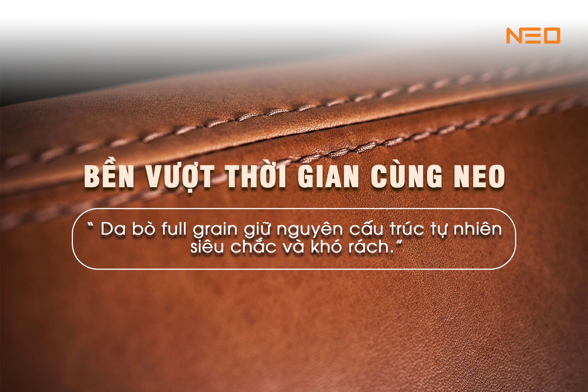 Da bò Full Grain là biểu tượng của sự bền bỉ, sang trọng và tinh tế. Khi kết hợp cùng tinh thần sáng tạo của NEO, chất liệu này không chỉ làm đẹp không gian sống, mà còn nâng tầm phong cách của chính bạn.