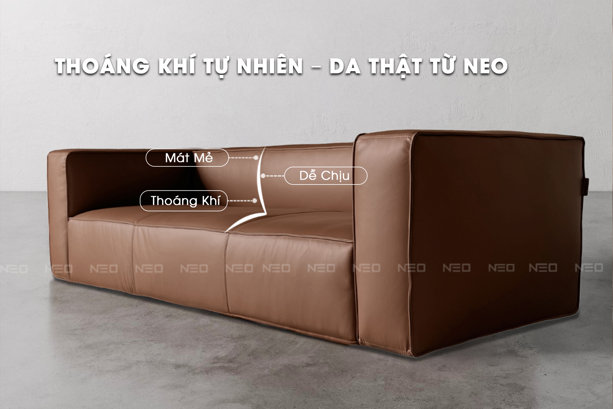 Chọn sofa da bò Full Grain của NEO không chỉ là chọn một món nội thất đẹp. Đó là chọn sự bền vững – từ chất liệu thân thiện môi trường, an toàn cho sức khỏe, đến giá trị sử dụng lâu dài. Mỗi đường may, mỗi chi tiết trên sofa đều được hoàn thiện tỉ mỉ, mang lại trải nghiệm thoải mái và cảm giác tự hào khi sử dụng.