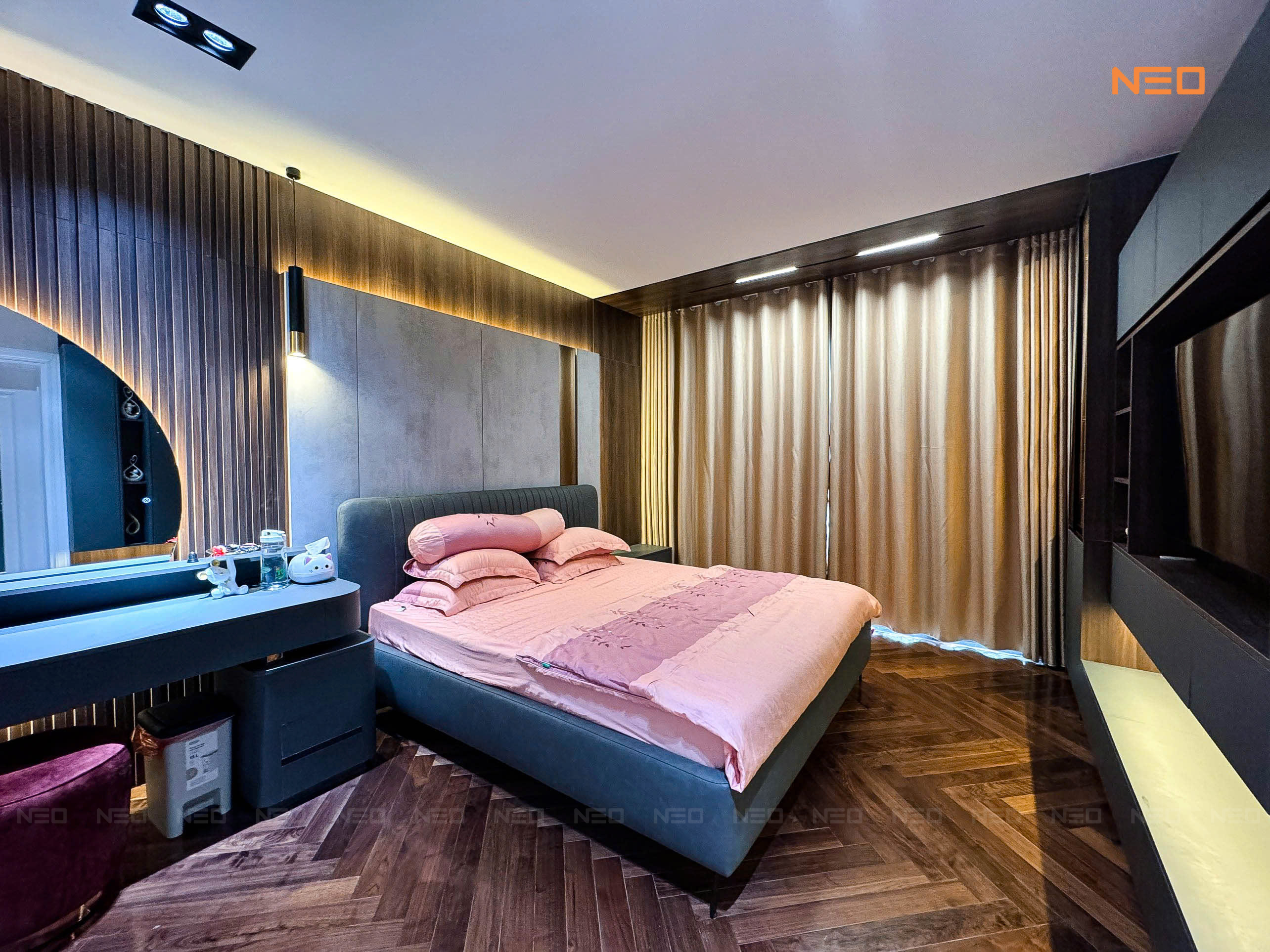 Sau khi hoàn thiện không gian phòng ngủ, điều khiến gia chủ hài lòng nhất chính là chiếc giường ngủ đến từ nhà NEO. Không chỉ đóng vai trò là món nội thất trung tâm, chiếc giường còn góp phần định hình cảm xúc, phong cách sống và chất lượng nghỉ ngơi mỗi ngày trong không gian riêng tư của gia đình.