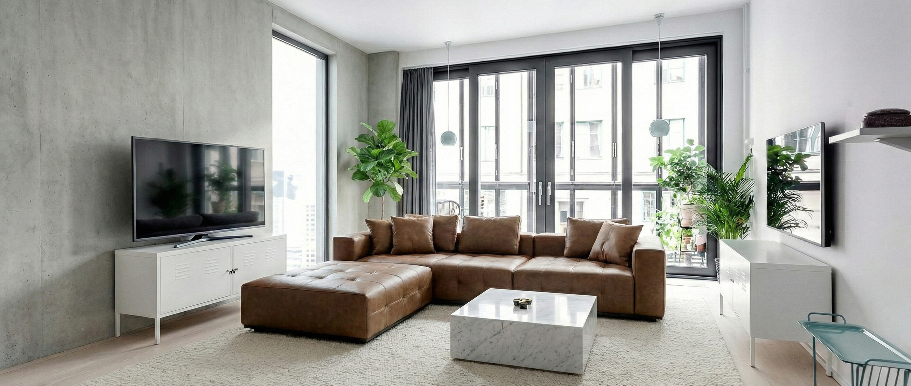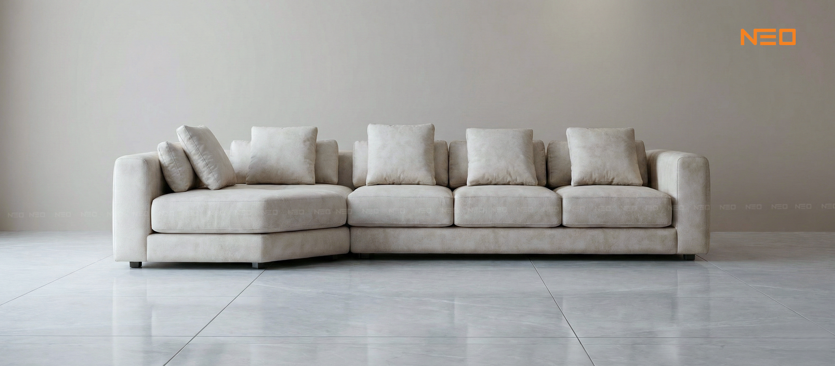 Với những căn hộ chung cư có diện tích vừa và lớn, sofa góc L là lựa chọn thông minh để tận dụng tối đa không gian. Thiết kế góc giúp mở rộng chỗ ngồi, tạo cảm giác ấm cúng và gắn kết cho khu vực sinh hoạt chung. Các mẫu sofa góc L từ NEO được tính toán kỹ về tỷ lệ, đảm bảo không gây cảm giác nặng nề cho không gian mà vẫn mang lại sự thoải mái khi thư giãn, xem phim hay tiếp khách.
